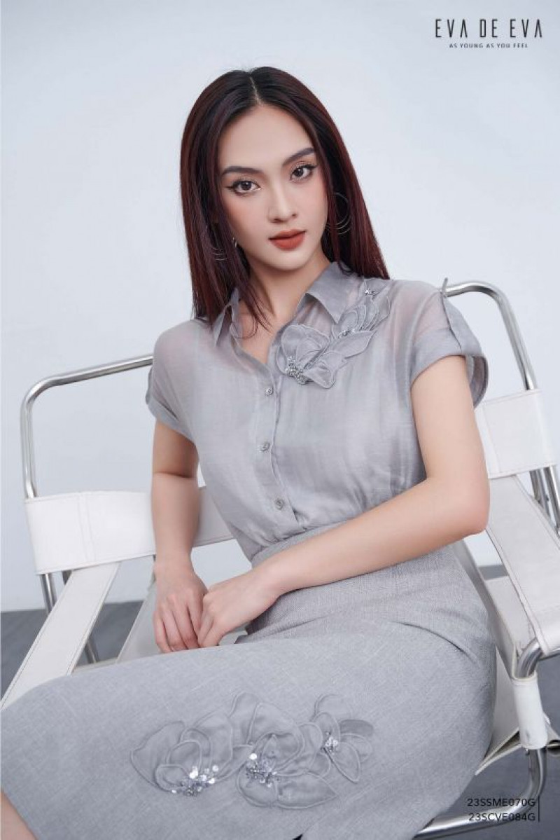 Sơ mi tay chờm, có chi tiết hoa 3D trang trí phần ngực tạo điểm nhấn ấn tượng