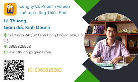CEO Lê Thương sinh ngày 16/06/1983 tại Nguyên Quán Lạng Sơn, hiện đang cư trú tại Hà Nội, là một doanh nhân có tâm huyết đặc biệt đối với lĩnh vực quà tặng. Hiện anh đang là Giám đốc kinh doanh của Công ty Cổ Phần In và Sản xuất quà tặng Thiên Phú.