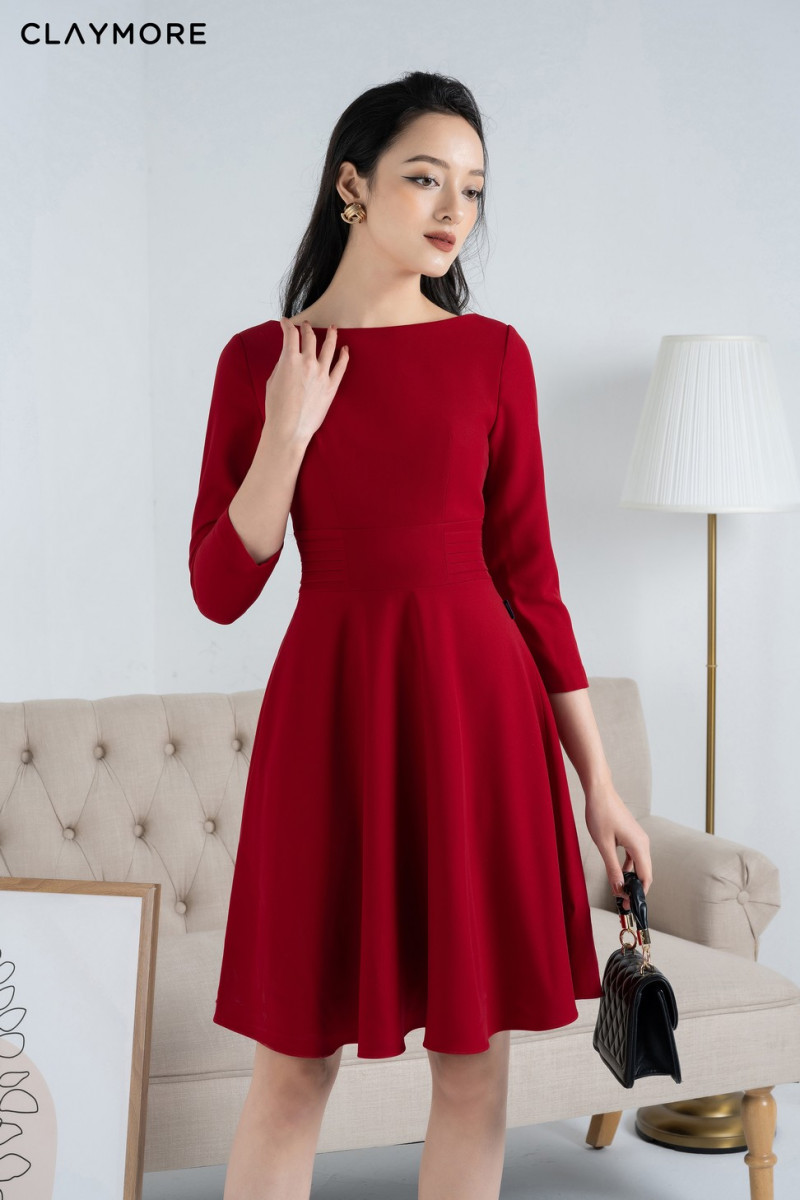 Đầm cổ thuyền cạp xếp ly