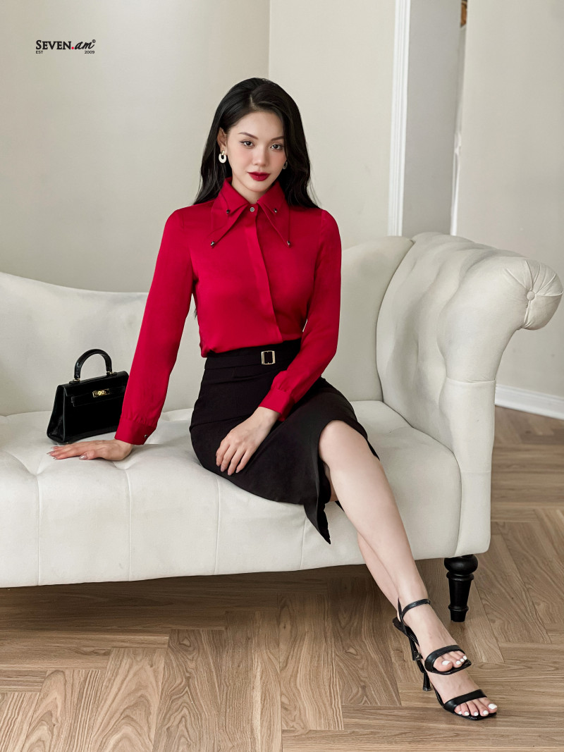 - Dòng hàng: Sơ mi cao cấp - Chất liệu vải: Lụa - Thông số size: S, M, L, XL - Màu sắc: Đỏ - Xuất xứ: Thời trang Seven.AM