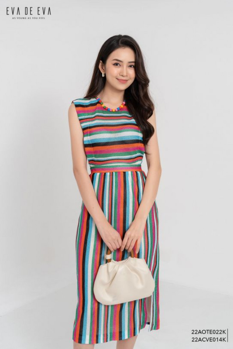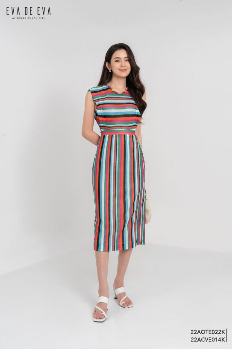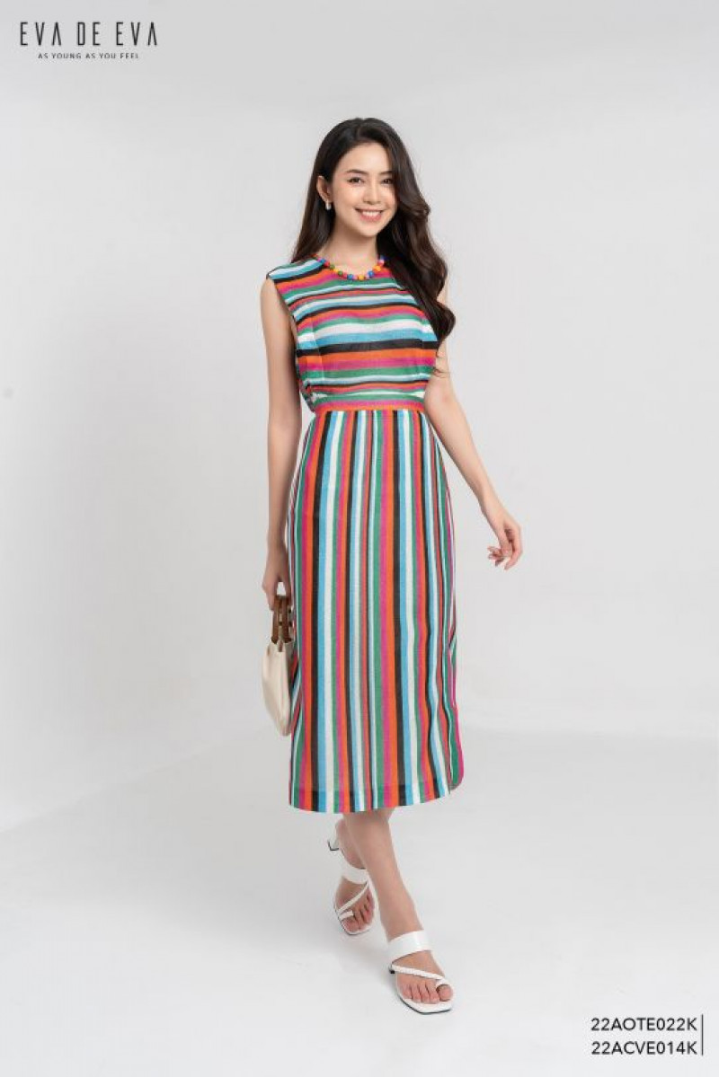 Chân váy midi phom dáng hơi ôm nhẹ, họa tiết kẻ bắt mắt. Có thể phối với áo kiểu cùng màu.