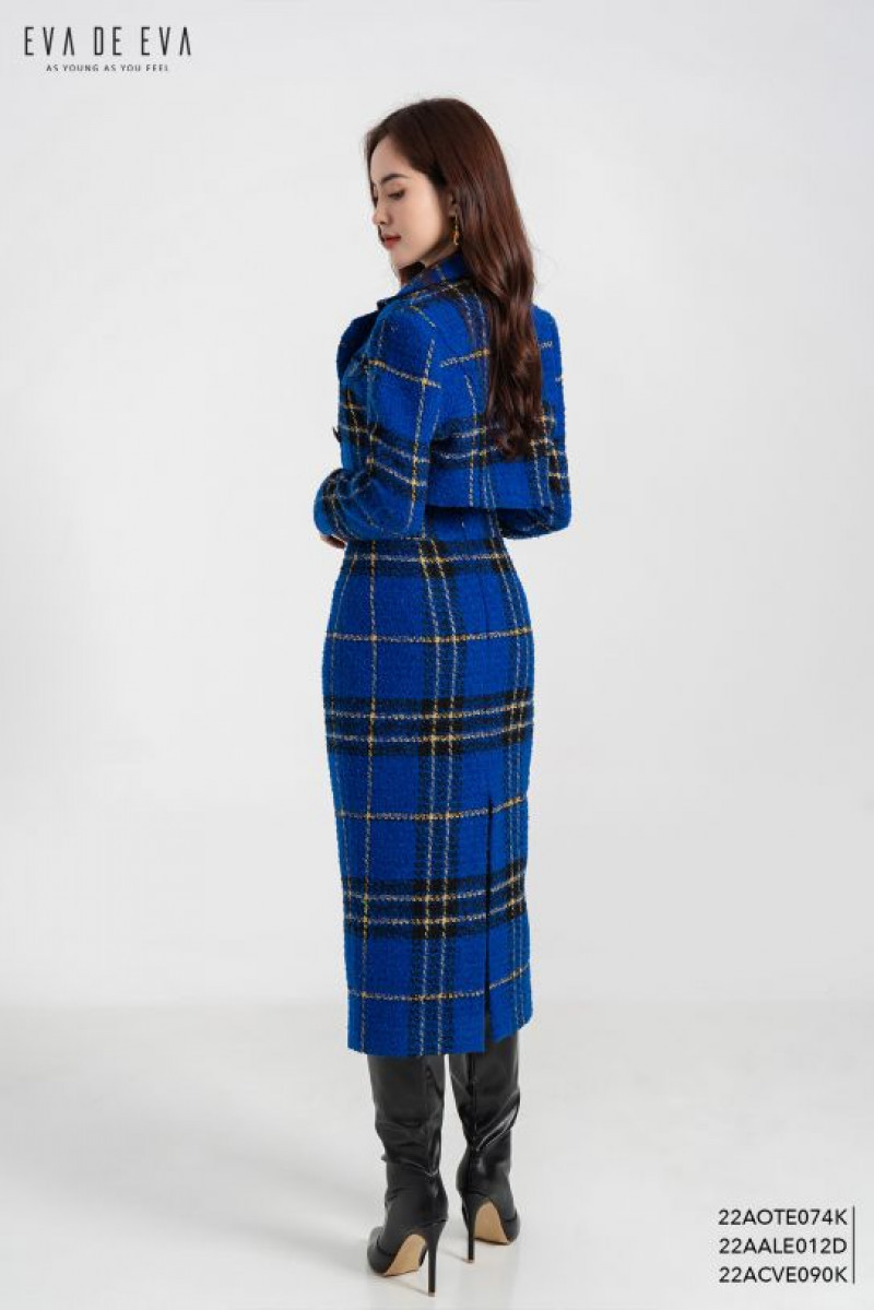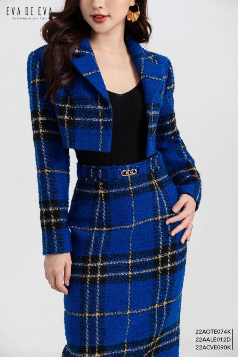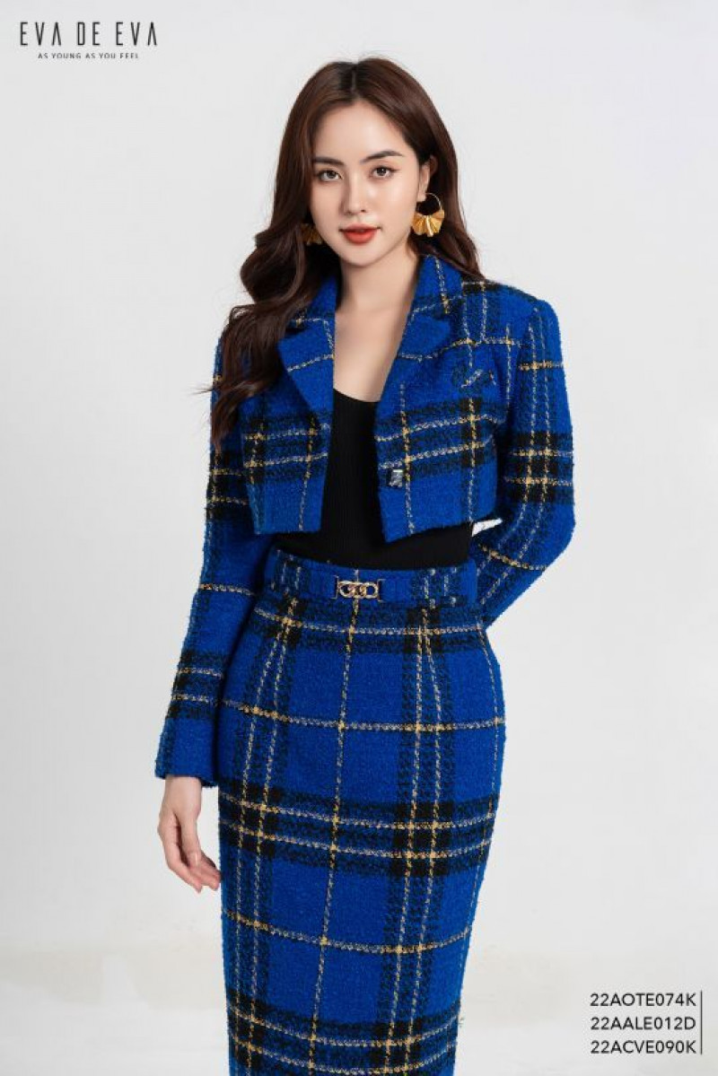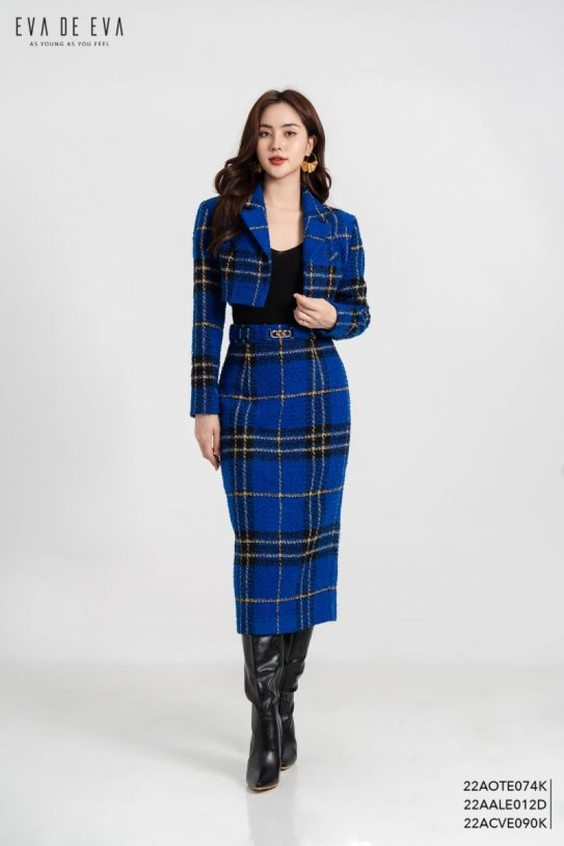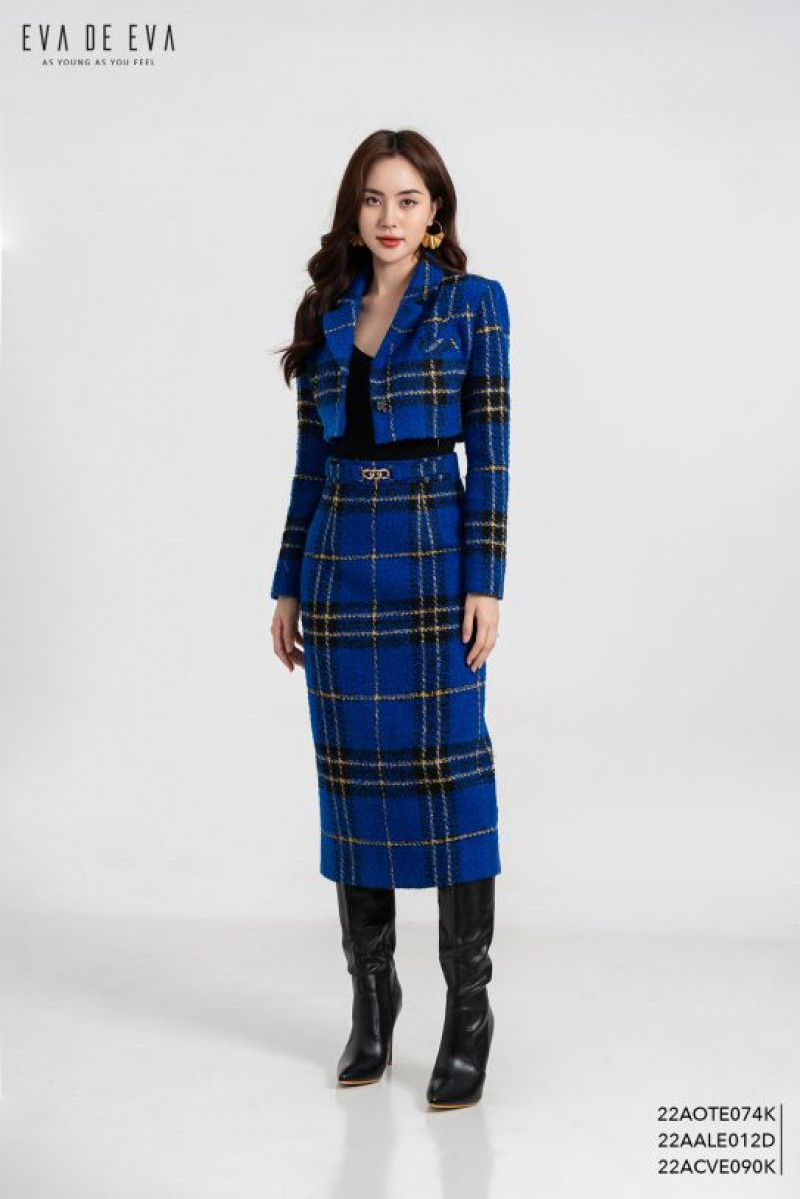 Chân váy bút chì ôm dáng, họa tiết kẻ caro nổi bật Màu sắc: Kẻ