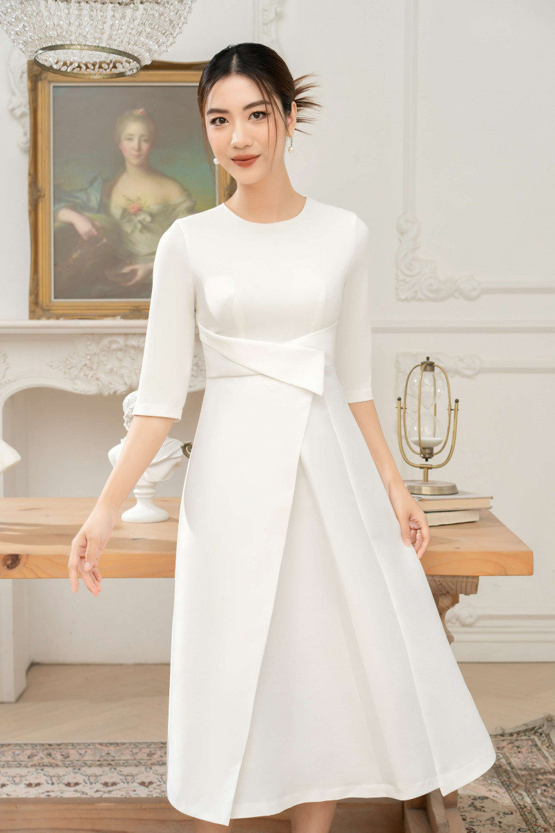 Đầm phối xếp ly tay lỡ
