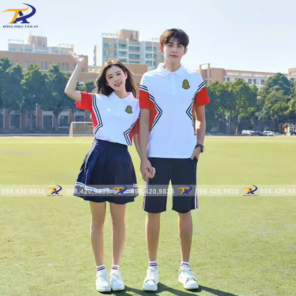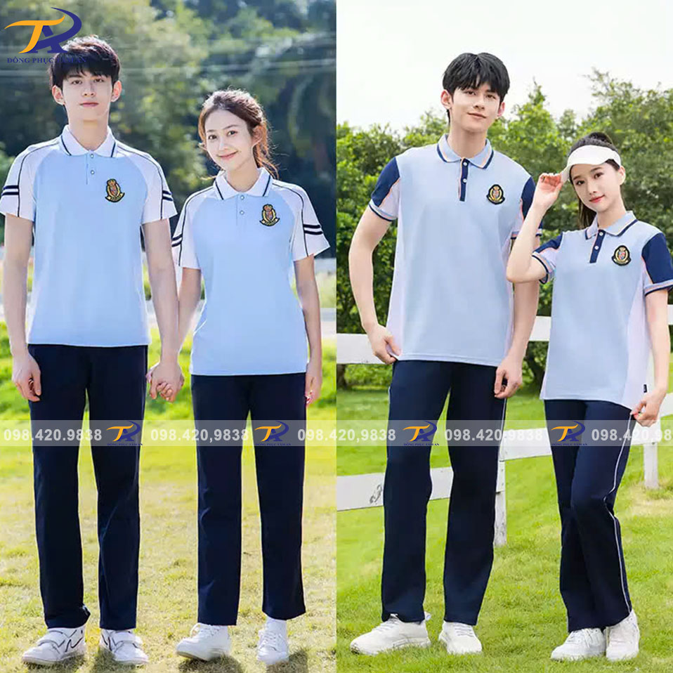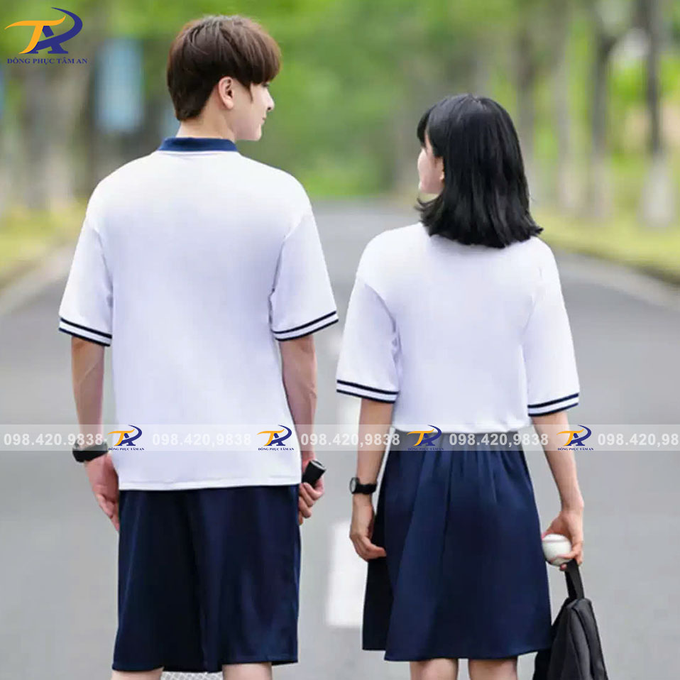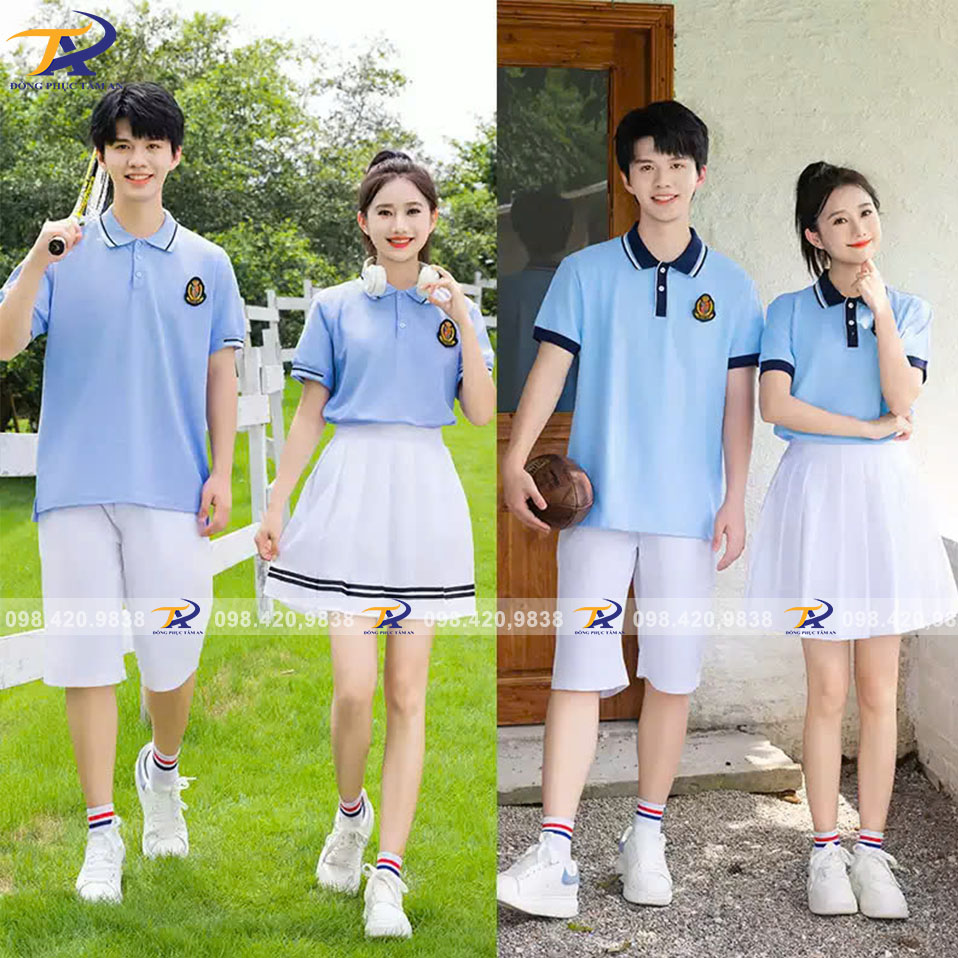 - Màu sắc tươi sáng, dễ phối đồ: Màu áo đa dạng từ trắng, xanh dương, đỏ, xám đến các màu sắc khác tùy theo yêu cầu của trường học, giúp đồng phục luôn hài hòa và nổi bật.