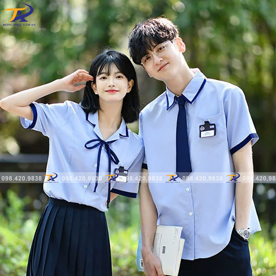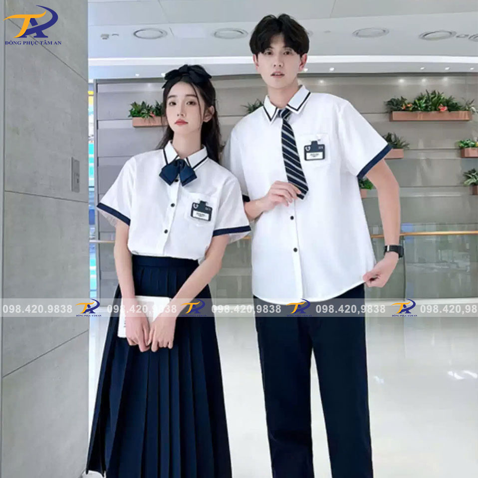 - Màu sắc truyền thống: Đồng phục sơ mi thường có màu sắc trung tính như trắng, xanh dương nhạt, hoặc xám, dễ dàng phối hợp với quần tây, chân váy hay áo khoác, tạo nên bộ đồng phục hài hòa và đồng bộ.
