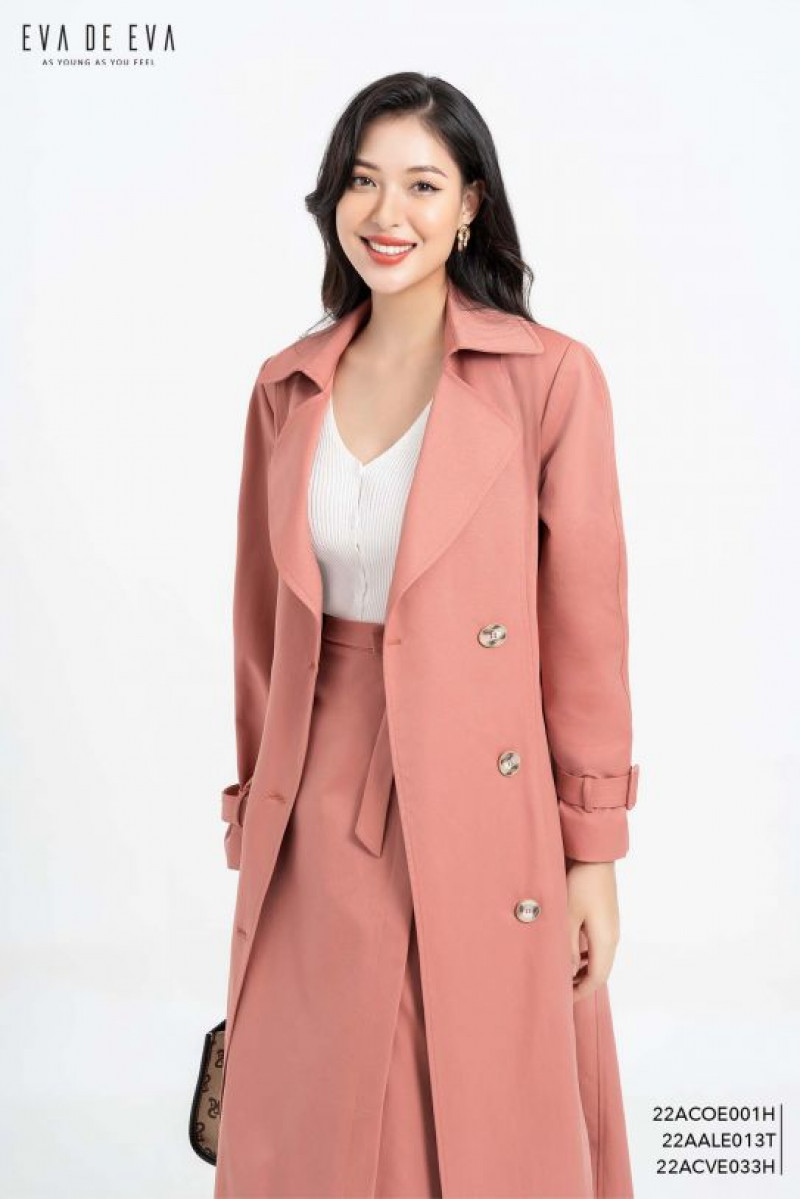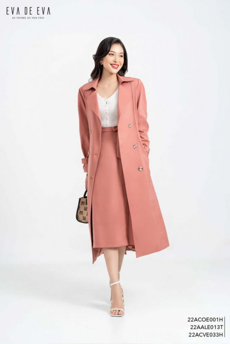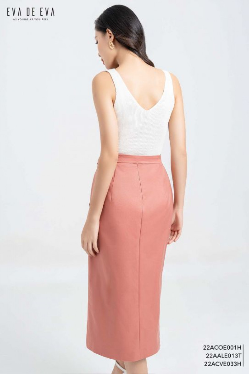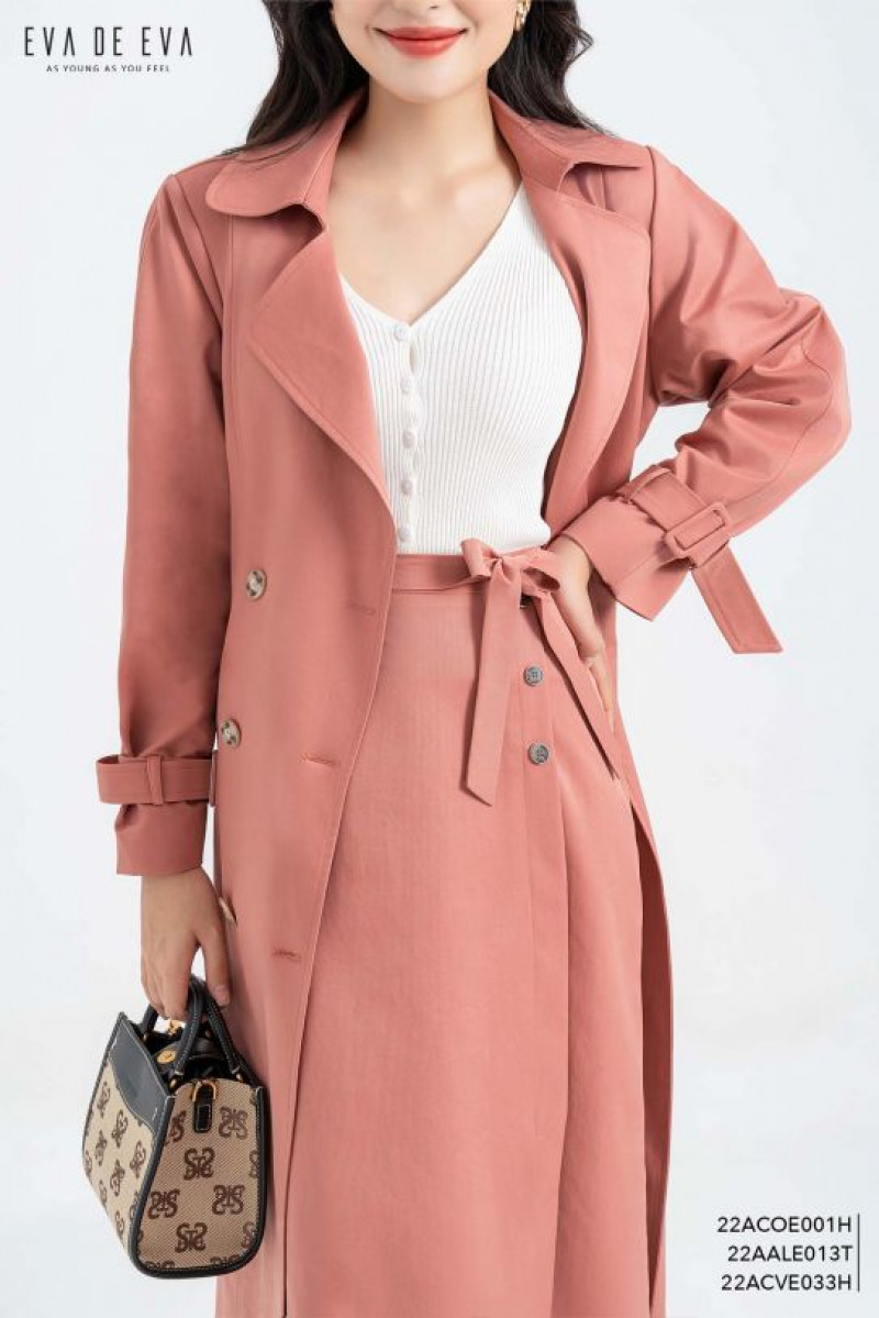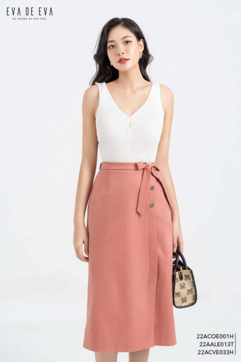 Chân váy A, màu hồng nữ tính, có chi tiết đai thắt nơ eo cách điệu