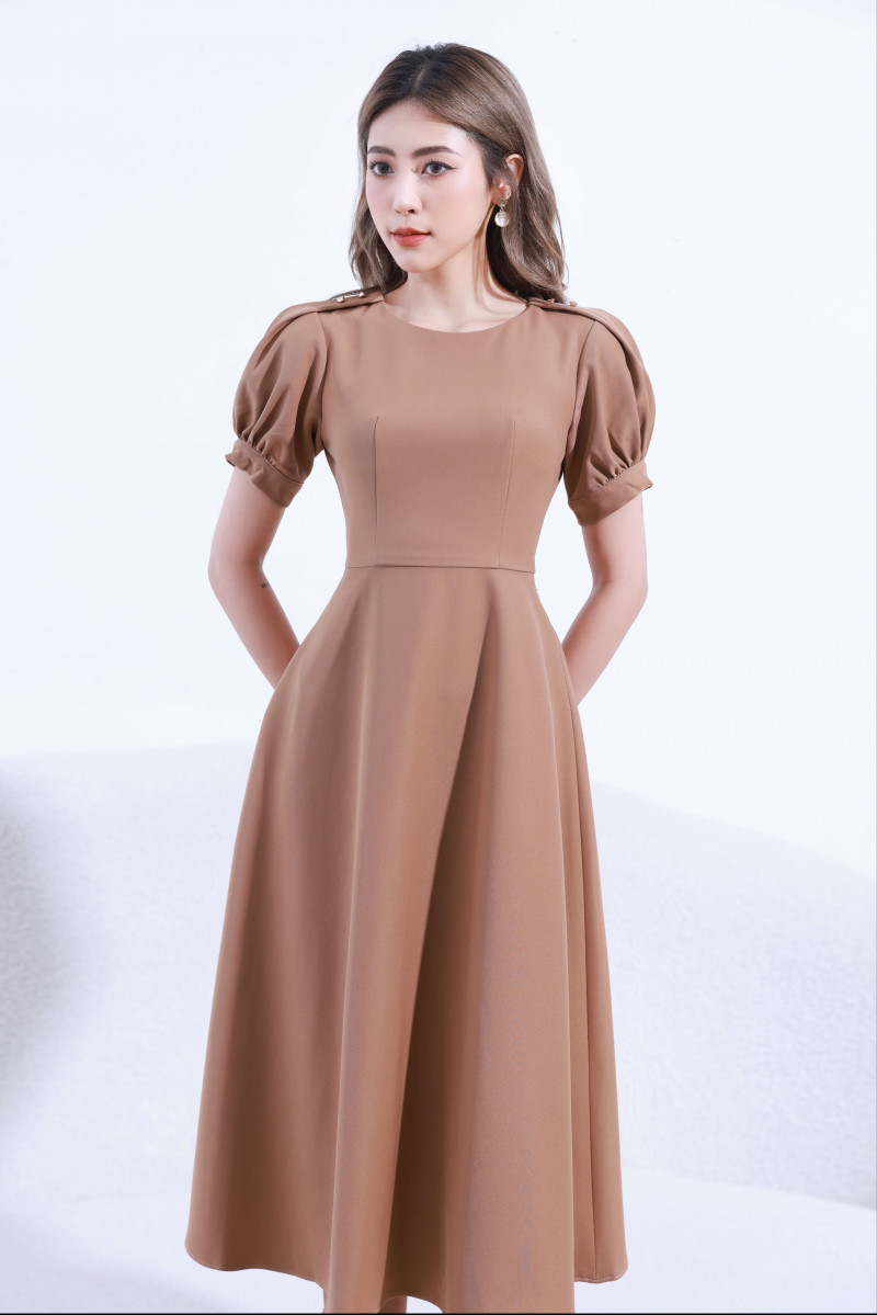 Đầm xòe vai xếp ly-CFDXS206416