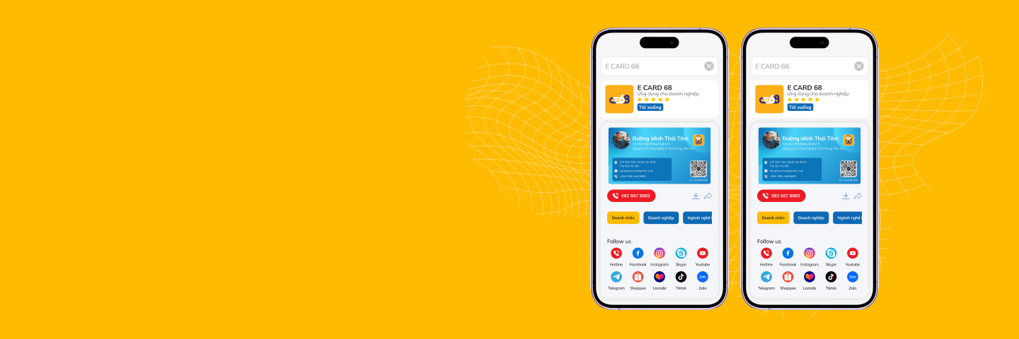 Với E Card 68 chúng tôi tin chắc sẽ phù hợp với tất cả các nghành nghề trong xã hội, là chuyển đổi số thực sự ngoài ra E Card còn được đồng bộ sản phẩm lên nhiều sàn TMĐT, APP mang tầm quốc gia.